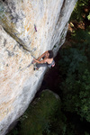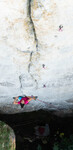 Höhe: 32 m , Sicherung: klassisch ( ) , Ausrüstung: Ausrüstung: 12 zwischenhaken (neue bolts + bühler) und umlenkbühler überm Band