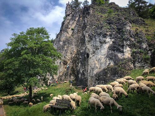 Idyllisch gelegen. Der Fels ist nicht immer 100%ig, aber das tritt sich bestimmt mit der Zeit noch fest. Parkt die Picknickdecke mit den Kindern in sicherer Entfernung. Der Fels besteht aus zwei Sektoren: Dem ins Auge springenden Felstum und der rechts oben liegenden Königshöhle.