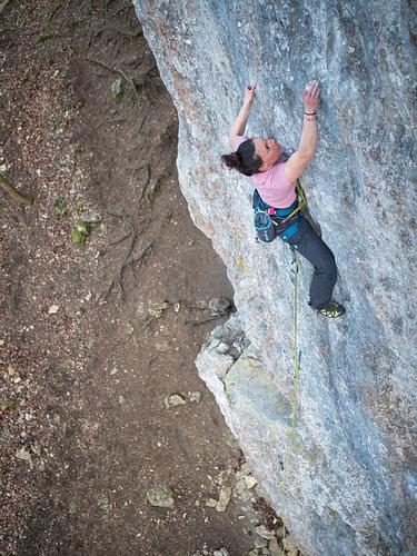 Viele Genussrouten zwischen 4 und 7. Gestein leider nicht immer fest aber gut abgeklettert. Die meisten Routen sind sehr gut abgesichert. Ein Helm ist hier klar zu empfehlen. Kinder und Picknickdecken haben wegen Steinschlaggefahr nichts im Einstiegsbereich zu suchen! Achtung: Wandhöhe 40m. Wer also in den langen Routen am letzten Umlenker umlenken möchte braucht ein 80m Seil! Leider hat es schon Unfälle aufgrund zu kurzer Seile gegeben.