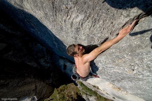 Die "Norm- 9- des Altmühltals". Tricksige maximalkräftige Schlüsselpassage bei der man meist schon platt ist wenn man endlich geschnallt hat wie es geht... Toller Fels! Ausrüstung: Ich persönlich mag den letzten UL gar nicht. (In großem Block drin)Absicherung:sehr gut / wie Kletterhalle