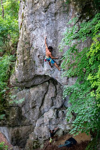 Unten richtig steil und sehr kräftig, die Durchstiegsbremse ist dann ein tricky Aufsteher am letzten Bauch vorm Umlenker. Absicherung:sehr gut / wie Kletterhalle