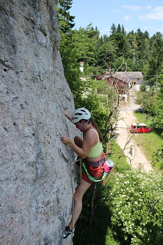An der Schlüsselstelle direkt über kleine Griffe klettern, links über das Gebrösel auskneifen erschwert das Klippen enorm! Die Schuppen am dritten Haken liebevoll behandeln!