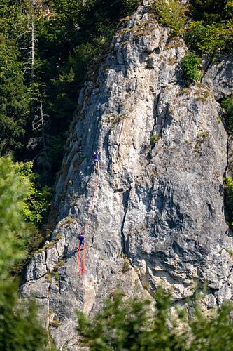 Mittlerweile kann auch die zweite Seillänge empfohlen werden. Ditte Seillänge möglich aber sehr kurz bzw. oben raus nur noch Gemüse. Hier hat leider jemand die Hälfte der Haken umgeschlagen. So ist die Route eher alpin und gefährlich abgesichert. Das ist schon ewig so. Vielleicht weiß einer der ganz frühen Generation warum dem so ist. Vielleicht hat man die Haken früher so gebaut ? Geringere Hebelkräfte, könnte ich mir vorstellen. Ich sehe das in älteren Kletterrouten immer wieder. Ich hatte 1984 zum ersten Mal Kontakt mit dem Kastlweg und schon damals waren die Bühlerhaken umgebogen. Damals gab es noch einige Normalhaken, die mittlerweile saniert worden sind - das sind die Haken, die heute grade sind. Ich weiß aber nicht, wer das war oder warum die Haken umgeschlagen wurden. Ich vermute mal, dass ein traditionsbewusster Bergsteiger (sowas gab es früher noch...) extrem angepisst war und den Untergang des Alpinismus verhindern wollte. Das war damals gar nicht so ungewöhnlich: In Prunn waren auch etliche Bühler umgeschlagen (z.B Jörg-Lehne-Ged.Weg an der Prunner Wand oder Südriss am Prunner Turm). In anderen Gebieten wie in der Südpfalz war das noch viel schlimmer als bei uns - da haben die Traditionalisten gleich die Ringe abgesägt, die aus dem Abseilsitz gesetzt wurden. Wenn Du Anfang der 80er Jahre einen Bohrhaken gesetzt hast, wo man auch einen Klemmkeil hätte legen können (oder eine SU - Schlinge...) wurdest Du medial (DAV - Jahrbuch oder die damals relevante Bergsteigerpresse) angegiftet und dein Werk öffentlich als Frevel angeprangert. Deshalb haben es sich die Leute damals gut überlegt, wo man bohrt und wo man es lieber bleiben lässt. Das erklärt vielleicht den einen oder anderen Runout... Habe in der Tour heute ein Bündel Exen gefunden. Sah so aus, als wären sie beim Unwetter vor ca einer Woche hängen gelassen worden. Der Besitzer kann sich gerne für die Abholungbei mit unter kontakt@simonbauer-kletterlehrer.de melden. -