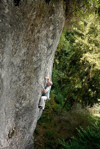 der haken an der kante am besten verlängern - dann gehts auch mit einem lächeln! :-) Sau guade Tour mit na zapfigen Einzelstelle. Erstaunlich was man auf die paar Meter für einen Pump generiert. Meiner Meinung nach genauso schwer wie die innere Sicherheit. Man könnte also ruhig nen glatten 8er hergeben. -