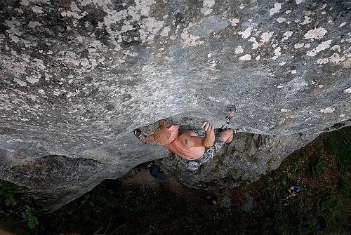 Wunderschön, bis man an ein praktisch griffreie Platte gelangt, auf der die Tritte auch noch irgendwie falsch verteilt zu sein scheinen. Hier sah man schon mehrere muskelbepackte Kerle verzweifeln, während eine gewisse Frau G. die Stelle elfengelcih emporschwebte. Absicherung:sehr gut / wie Kletterhalle