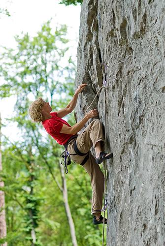 Schön! Die Tour ist eher breit als hoch und entsprechend dämlich wieder abzubauen. Absicherung:sehr gut / wie Kletterhalle