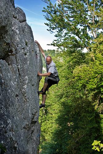 prima fränkisches gezergel an immens vielfältigen löchern von 2-finger- über knieklemmer- bis geierhorstgröße. damit man dem posing-potential der route voll gerecht wird, sollte am einstieg der mädchen-und-zwergenstein den mädchen und zwergen vorbehalten bleiben, finde ich. und alle ab 1,65 haben den ganz klaren auftrag, so männlich wie möglich aus dem streckhang loszuhangeln - ab 1,85 muss man dazu im knien anfangen! ;) -