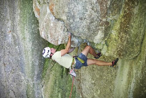 Nach Griffausbruch schon wieder geklettert, mit Sicherheit nicht leichter geworden... Absicherung:klassisch
