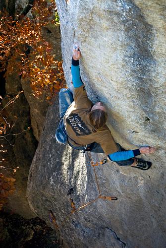 Wer den Weg nicht kennt sollte ein Crashpad mitbringen... ( Und wer ihn kennt wird auch eins mögen ) Hut ab wer da onsight ohne Vorklippen oder Crashpad rein geht. Und wenn man denkt man hats geschafft, kommt auch noch die Crux der "Old school 6+" daher. -