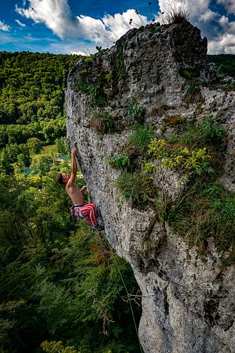 Vom letzten Zwischenhaken zum Umlenker…großes Fragezeichen!!!! Hab da nichts gefunden um diese 1,5 mtr zu überwinden. Hat die von Euch mal jemand gemacht und evtl ne Lösung parat? Irgendwann kamen mal so ganz ok'e Leisten mit denen man in der Delle aufstehen konnte glaub ich...Fand die tour aber auch ne nummer härter als das Warzenschwein ;) Sollt ich mir dann doch eher mal das Warzenschwein anschauen… Seid ihr das tatsächlich ab dem ersten eigenständigen Haken in der Platte geklettert? Ich habs ab dem Klapfen am zweiten eigenen Haken gemacht und fands immer noch sehr schwer für den Grad. Bezüglich dem letzten Haken: Da habe ich die Leiste mit links. Rechts den scharfen Seitgriff neben der Einfingerdulle. Dann den rechten Fuß neben die Hand und mit ganz viel Vertrauen aufstehen, bis man an den guten Riss kommt. Ich glaub ich habs auch so gemacht wie du Lando, oder zumindest mim Fuß bin ich lang im Riss stehn geblieben. Komplett über die Haken würde sich auch erzwungen anfühlen und dann kanns mir selbst im Altmühltal niemand mehr als 8- verkaufen -