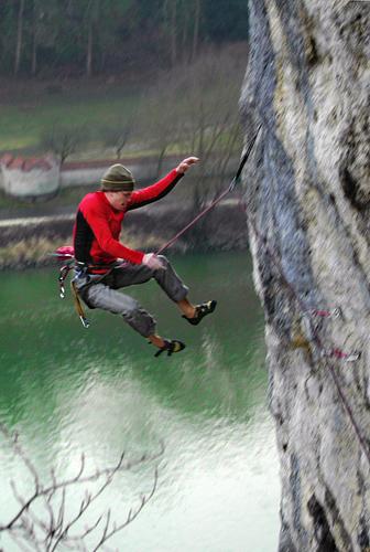 man braucht 17 expressen! im umlenkbühler hängt ein karabiner, ich hoffe der bleibt auch dort! Vorsicht: mit einem 70m seil kommt man grad noch runter! Jo, ein schicker Neuzugang. Wenn man die ersten Meter von "mein Freund S..." mitnimmt und ein dann noch paar Haken verlängert einhängt kann man auch locker über 20 Schlingen in der Route unterbringen. korrekt, echt lustiges gehenkel! wem der sigi löw zu einzelstellig ist, kann sich hier kontinuierlich zur umlenkung pumpen, wobei die möglichkeit der feinskaligen belastungssteuerung mittels seilzug und der anzahl der genutzten sicherungspunkte jeden trainingsfreak begeistern wird. :) warnender hinweis: das teil pumpt bis zum ende! der griff um den umlenker zu klippen ist auf der linken seite versteckt, zudem sollte man die längsten expressen nicht durch die ganze tour tragen um sie in den letzten bolt einzuhängen;-) andernfalls besteht eine nicht unerhebliche chance auf einen satten freiflug - das verletzungsrisiko beschrängt sich aber nur auf ausgerengte touristen-unterkiefer jetzt weeß ick ooch, warum det grüner riwwer heeßt! blau ist die donau doch nur in heimatfilmen oder ingos photoshop ;) dafür kann einen die tour doch mal ganz schön blau machen... und wenn's laktat so richtig in den augen blubbert und man fast in den umlenker beißen kann, gibt's doch nix geileres als anständig abzutauchen. da wär's um jeden flug(zenti)meter schade, yippiehh! green river war eine ziemlich kracherte band aus seattle. aufgrund heftiger differenzen haben sie sich ende der achziger jahre aufgelöst. die eine hälfte wurde "mudhoney" die andere "pearl jam". ich fands für den durchbruch irgendwie passend. der bandname stammt übrigens vom "green river killer" -
