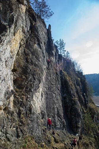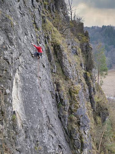 Ganz oben gibt es einen super Umlenker. Bitte nicht schon am letzten Zwischenhaken umlenken, der ist schon halb durch. Absicherung:sehr gut / wie Kletterhalle