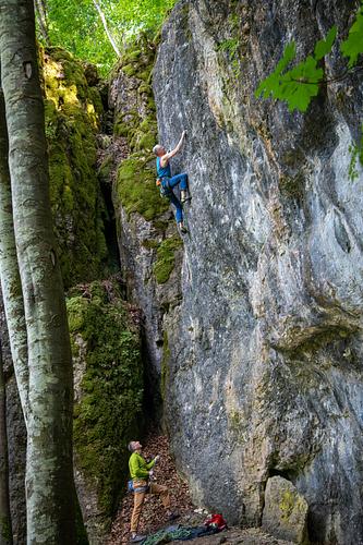 am rechten Massiv, zweite Tour von rechts ursprünglich 9-, dann angeblich Griffausbruch --> Vorschlag 9 der Erstbegeher benutzte bei seiner Rotpunktbegehung! den besagten Griff allerdings nicht Ausrüstung: 3 Bühler + Umlenker mit KarabinerAbsicherung:klassisch