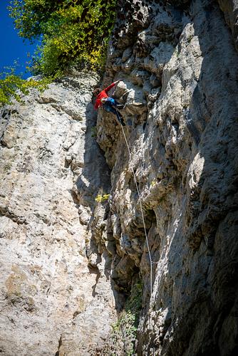 Im unteren Teil kräftige Kletterei an großen Griffen über die 3 Löcher, oben senkrechte Wandkletterei an Leisten und Löchern jeglicher Art in bestem Lochkalk. Eignet sich auch gut als Aufwärmtour, da man immer wieder recht spannungsfrei Schütteln kann. Kompliment für diese sehr schöne Route! Danke für die Wahnsinnsarbeit, die damit verbunden war. Danke auch an Eric, Maria, Eberhard, Papa und Lici fürs Sichern und die "kleine" Gartenarbeit vor Ort! Respekt. Einer der schönsten Routen im Tal. Unten kräftiges zupacken mit Gott sei Dank guten Schüttlern. Zwei Hacken sind ein wenig unglücklich gesetzt,bei dennen ein kleinerer Aspirant wohl ganz schön ins Schwitzen kommen wird. Am besten die Exen von einem Local vorklippen lassen, damit man am Austiegsdächlein noch genug Strom hat......denn das böse Ende kommt noch! -