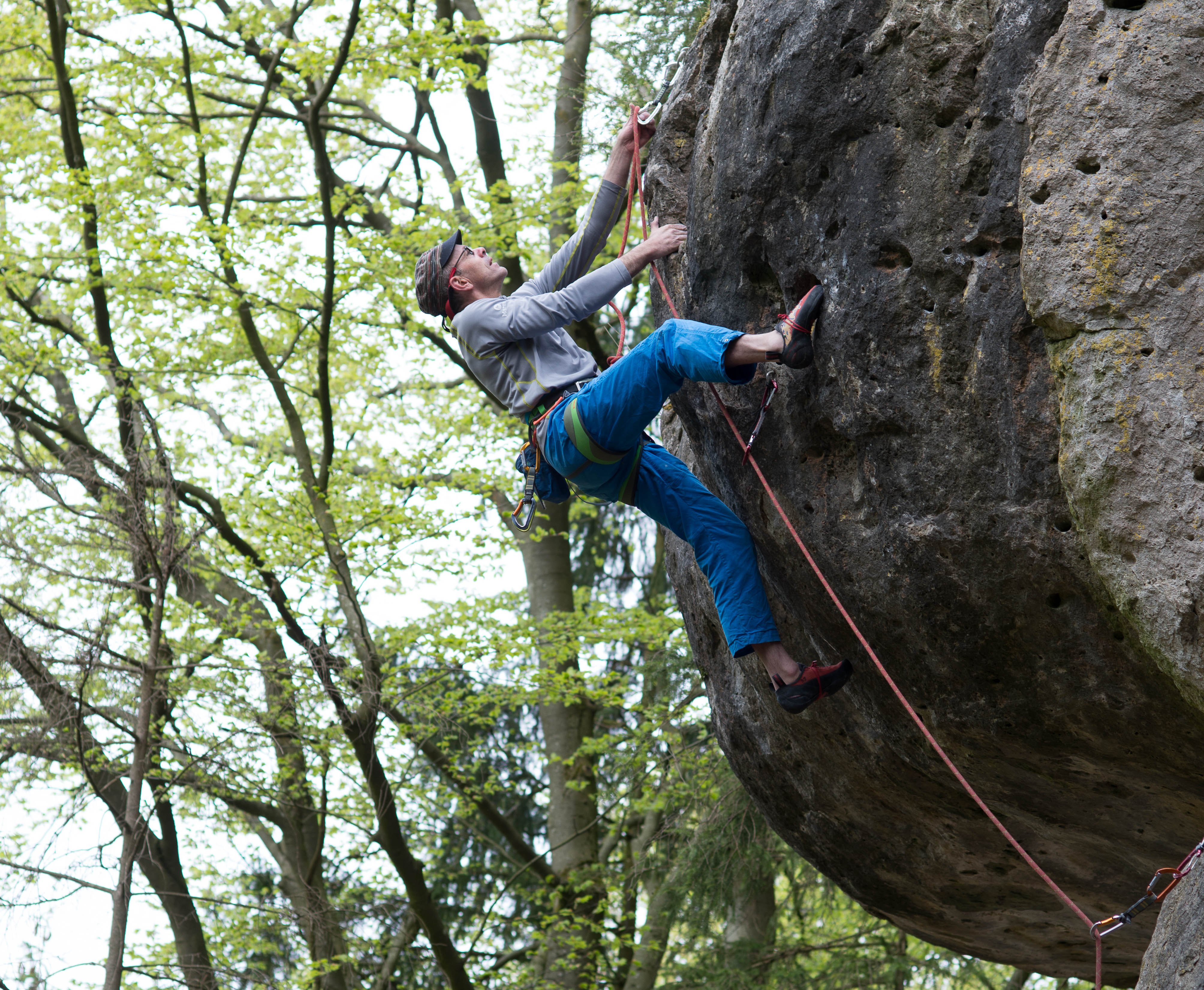 Alte Haken-Route, frisch saniert. Wer sich zw. 2. und 3. Haken wundert wie schwer 7 sein kann hat vorher einen Fehler gemacht. Absicherung:sehr gut / wie Kletterhalle