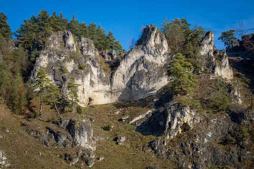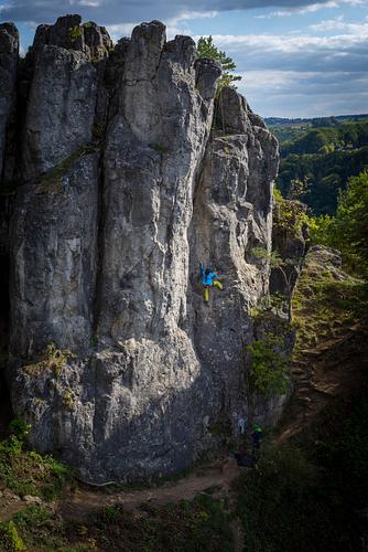 Sehr selten besuchtes, kleines Gebiet in der Nähe von Schönhofen. Wer die Einsamkeit liebt, sich vor Zecken nicht scheut und es in Kauf nimmt vor der Begehung erst einmal Staub zu wischen der ist hier richtig. DAS Gebiet für den der sonst schon alles kennt. Aber im Ernst: Dies ist kein Anfängergebiet, aber es gibt ein paar lohnende Ziele für den fortgeschrittenen Kletterer. Der zweite Sektor von links.