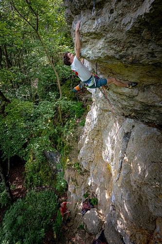 Viele Genussrouten zwischen 4 und 7. Gestein leider nicht immer fest aber gut abgeklettert. Die meisten Routen sind sehr gut abgesichert. Ein Helm ist hier klar zu empfehlen. Kinder und Picknickdecken haben wegen Steinschlaggefahr nichts im Einstiegsbereich zu suchen! Achtung: Wandhöhe 40m. Wer also in den langen Routen am letzten Umlenker umlenken möchte braucht ein 80m Seil! Leider hat es schon Unfälle aufgrund zu kurzer Seile gegeben.