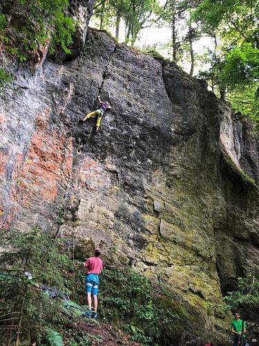 Am Roten Fels entstanden die allerersten Routen des Gebiets. Es gibt eine Handvoll lohnende Routen zwischen 6 und "Unmöglich".