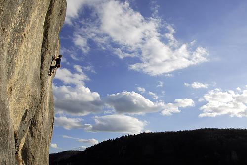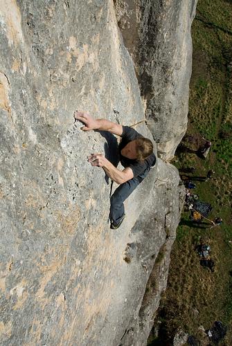 Tolle Züge in fantastischem Fels im mittleren Drittel. Erkaufen muss man sich das allerdings durch einen irgendwie umständlichen Einstieg (am Besten Linksbogen über die Platte) gefolgt von einer echt ungemütlichen Rissstelle und durch irgendwie unbefriedigende Ausstiegsoptionen. Rechts rum in den Totenvogel ist irgendwie blöd und gerade rauf ist vielleicht OK wenn man das kennt und weiß dass das Zeug hält. Aber wer macht sich schon die Mühe das vorher auszuchecken... In der Gesamtheit ein Wechselbad der Gefühle das den Rezensent ratlos bzgl. einer abschließenden Beurteilung zurücklässt. Einen Stern würde ich nicht vergeben und die Sicherung ist nach meinen Maßstäben auch nicht "sehr gut" da man bei einem Sturz nach der Rissstelle dem darunter liegenden Band verdammt nahe kommt. Das untere Drittel ist so wie im Bayerjura Führer eingezeichnet (gerade den Riss hoch) kaum kletterbar weil der Riss mit dornigem Gestrüpp zugewachsen ist und auch kaum Sicherungsoptionen bietet. Alternativ Linksbogen geht dort ganz gut und ist nett zu Klettern, hat aber Seilzug zur Folge. -