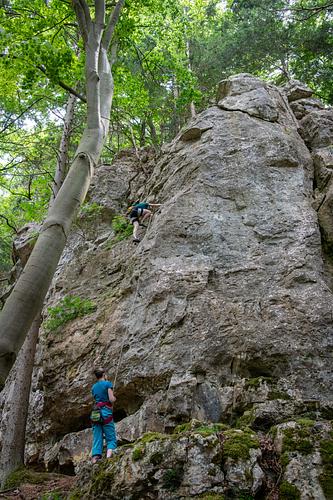 Dubioser Ausstieg im Kletterführer heißt "Lieber nicht fallen".