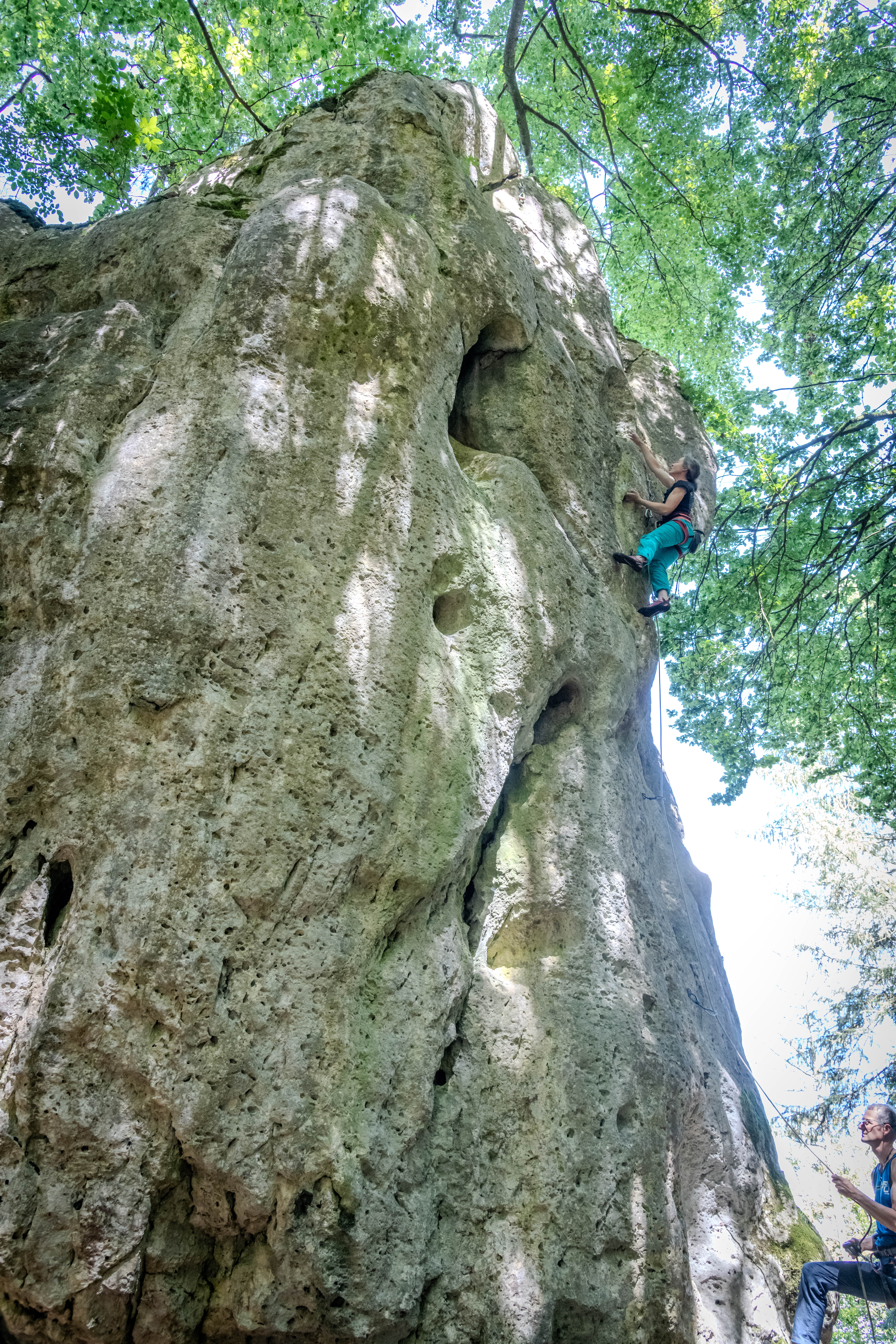 Lässige Tour, kann mich der Beschreibung im Kletterführer nicht ganz anschließen. Einstiegsboulder und dann ab dem dritten Haken an großen Griffen schön zum Umlenker. Der Einstiegsboulder ist tatsächlich schwierig zu lesen. Je nach Variante würde ich mal sagen 7- bis 8-. Hat man die richtigen Griffe aber erstmal gefunden ist es eine ziemlich gute Tour. -