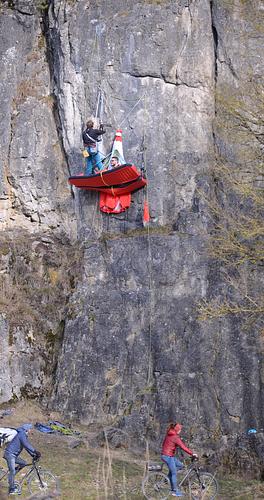Ich finde es ja sehr lobenswert, dass nachdem der Fixkarabiner verschwunden ist, jemand einen seiner Karabiner zum Umlenken geopfert hat. Allerdings sind Karabiner, wahrscheinlich aus dem Baumarkt mit einer max. Traglast von 350kg (längs) nicht zum Klettern geeignet. Ich habe den Karabiner entfernt.