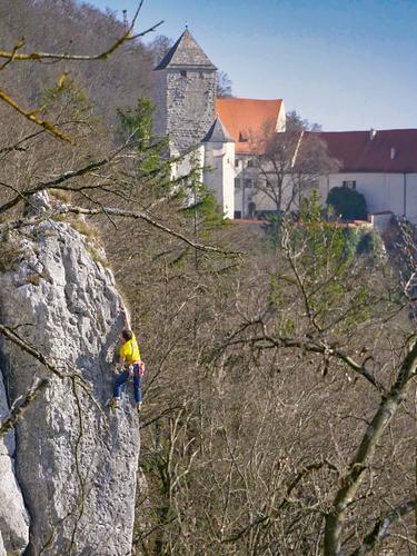 Vom letzten Zwischenhaken zum Umlenker…großes Fragezeichen!!!! Hab da nichts gefunden um diese 1,5 mtr zu überwinden. Hat die von Euch mal jemand gemacht und evtl ne Lösung parat? Irgendwann kamen mal so ganz ok'e Leisten mit denen man in der Delle aufstehen konnte glaub ich...Fand die tour aber auch ne nummer härter als das Warzenschwein ;) Sollt ich mir dann doch eher mal das Warzenschwein anschauen… Seid ihr das tatsächlich ab dem ersten eigenständigen Haken in der Platte geklettert? Ich habs ab dem Klapfen am zweiten eigenen Haken gemacht und fands immer noch sehr schwer für den Grad. Bezüglich dem letzten Haken: Da habe ich die Leiste mit links. Rechts den scharfen Seitgriff neben der Einfingerdulle. Dann den rechten Fuß neben die Hand und mit ganz viel Vertrauen aufstehen, bis man an den guten Riss kommt. Ich glaub ich habs auch so gemacht wie du Lando, oder zumindest mim Fuß bin ich lang im Riss stehn geblieben. Komplett über die Haken würde sich auch erzwungen anfühlen und dann kanns mir selbst im Altmühltal niemand mehr als 8- verkaufen -