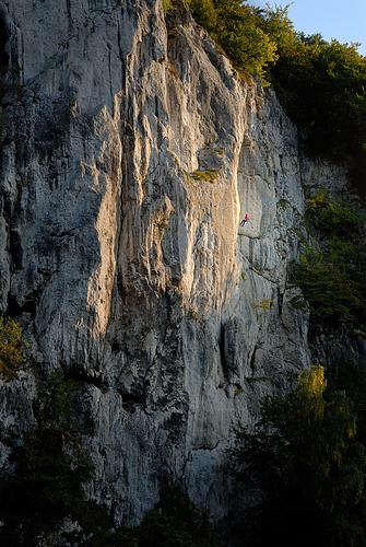 Gute Route mit schönen Zügen die am Nachmittag noch lange im Schatten ist. Leider ohne vorklippen des hohen ersten Hakens fast nicht kletterbar da dort die Crux lauert und das Gelände nicht zu einem Absprung einlädt. -