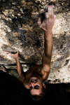 Leicht überhängende Kante mit 3 Einzelstellen und gutem Rest im oberen Drittel. Momentan noch sehr rauh.